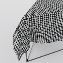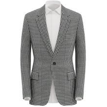 该面料由纯新澳毛与棉交织而成,触手可及的细腻与柔软,黑与白的经典撞色搭配,经典的千鸟格花型,微肌理的视觉效果,使其具有了更高的辨识度。